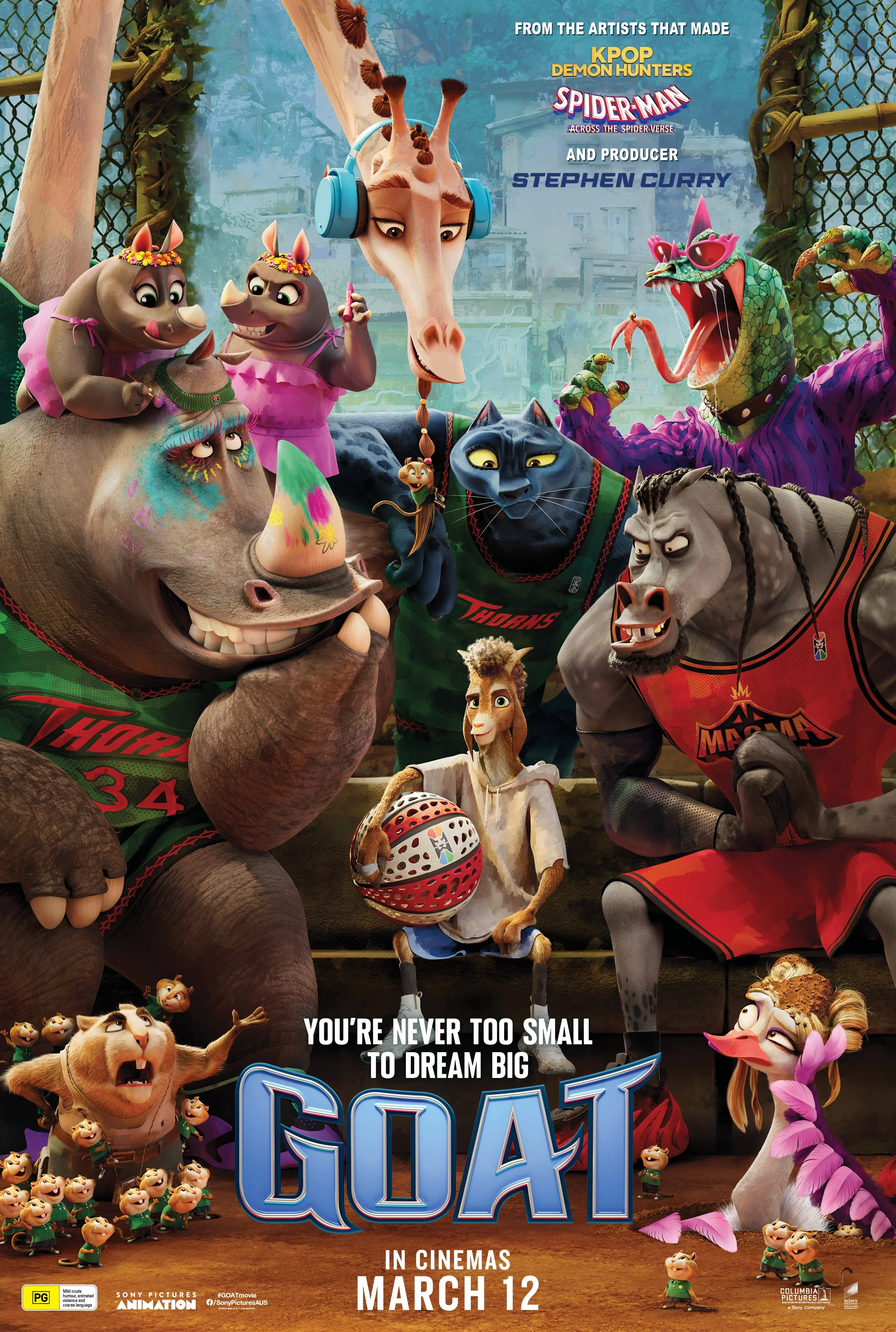 From Sony Pictures Animation, the studio behind Spider-ManTM: Across the Spider-Verse and the artists that made KPop Demon Hunters, comes GOAT, an original action-comedy set in an all-animal world.