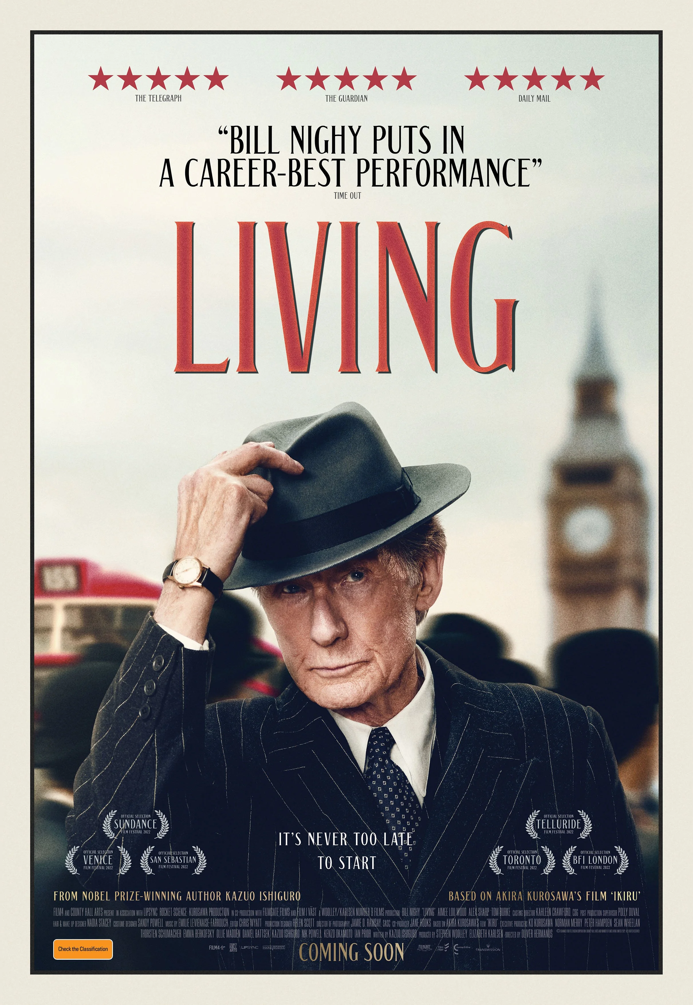 LIVING is the story of an ordinary man, reduced by years of oppressive office routine to a shadow existence, who at the eleventh hour makes a supreme effort to turn his dull life into something wonderful – into one he can say has been lived to the full.