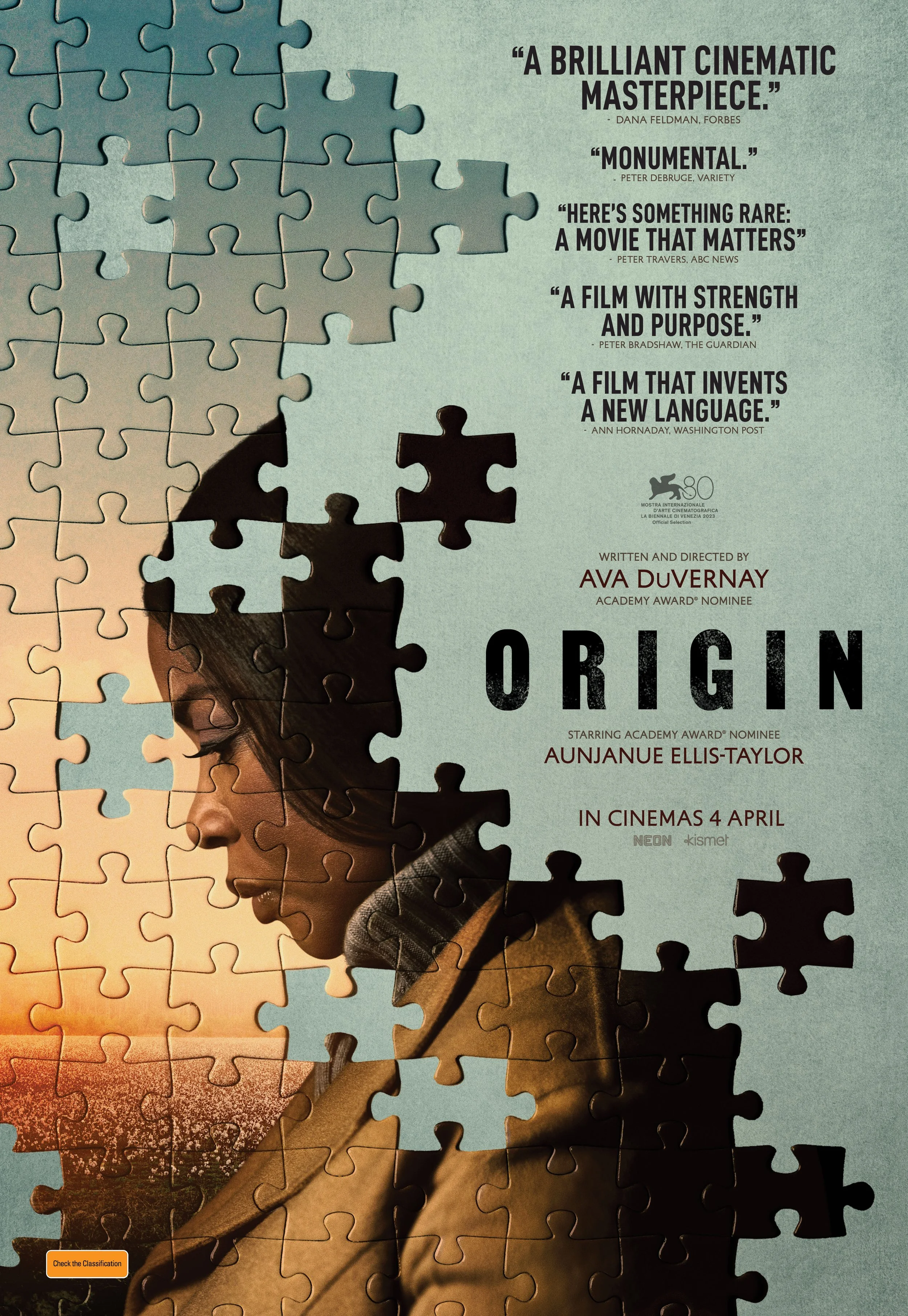 ORIGIN is a gripping cinematic revelation directed by Oscar-nominated visionary Ava DuVernay, with riveting performances from Academy Award nominee Aunjanue Ellis-Taylor (King Richard) and Jon Bernthal (The Bear). Adapted from a best-selling book penned by a Pulitzer Prize-winning journalist, this fascinating narrative delves into timely social justice themes, resonating deeply as the USA elections loom, and locally societal fractures become more evident following the divisive Voice referendum outcome in 2023.