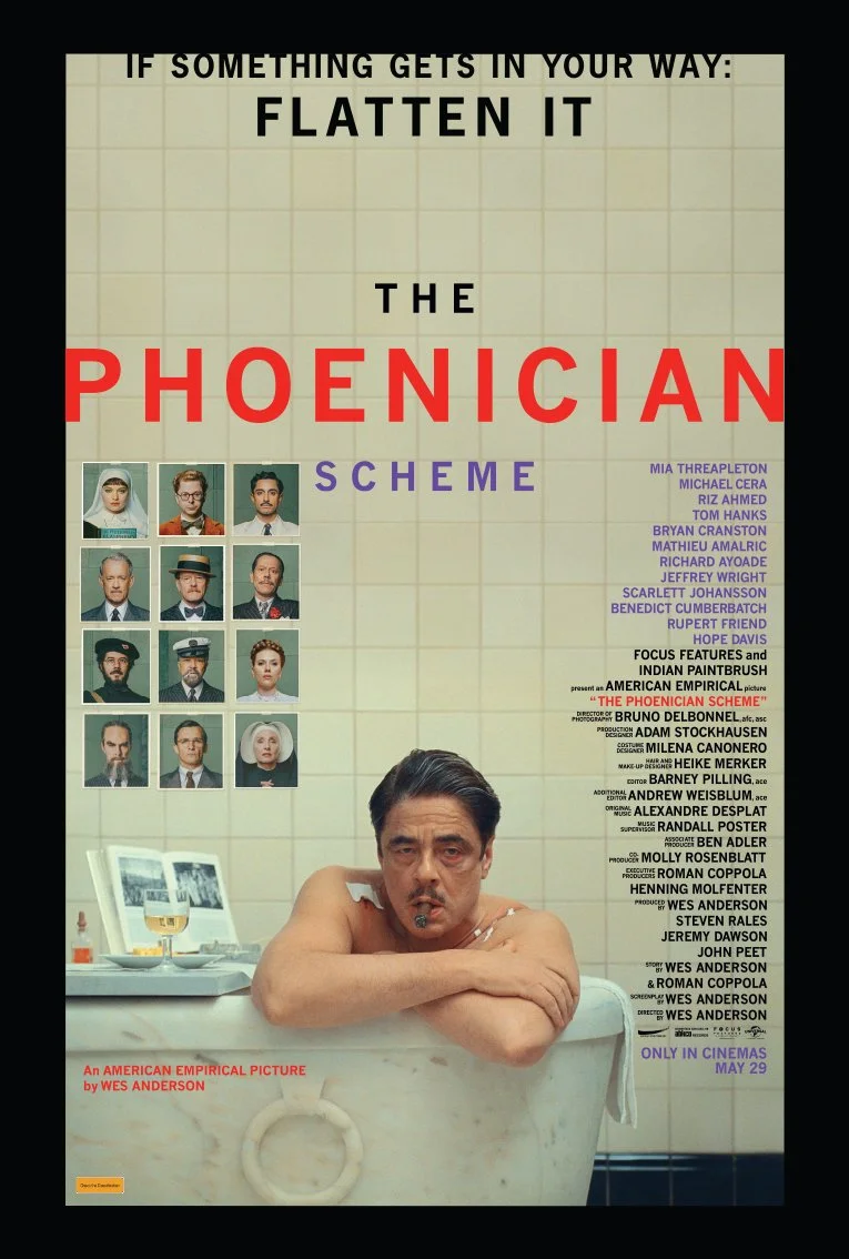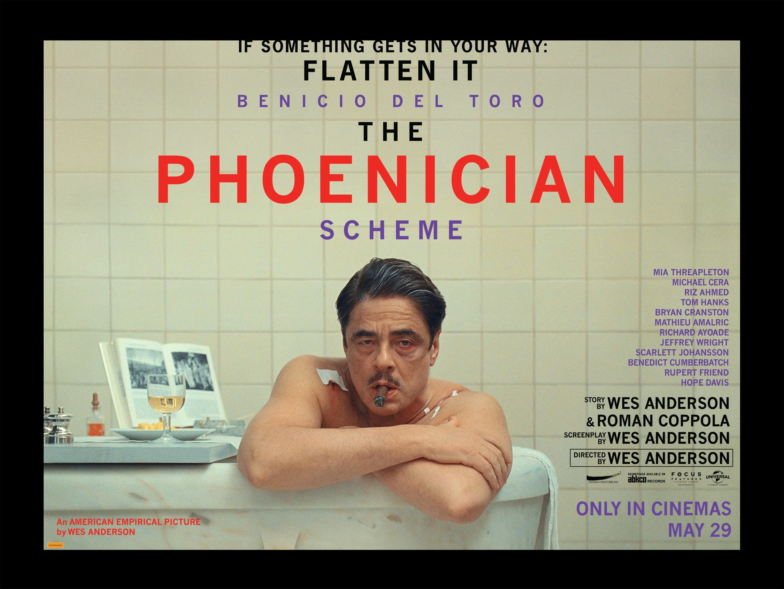 The Phoenician scheme (from director Wes Anderson) is a story of a family and a family business, starring Benicio del Toro as Zsa-zsa Korda, one of the richest men in Europe; Mia Threapleton as Sister Liesl, his daughter/a nun; Michael Cera as Bjorn Lund, their tutor and featuring a stellar ensemble of Tom Hanks, Bryan Cranston, Riz Ahmed, Mathieu Amalric, Jeffrey Wright, Scarlett Johansson, Richard Ayoade, Rupert Friend, Hope Davis, and Benedict Cumberbatch.